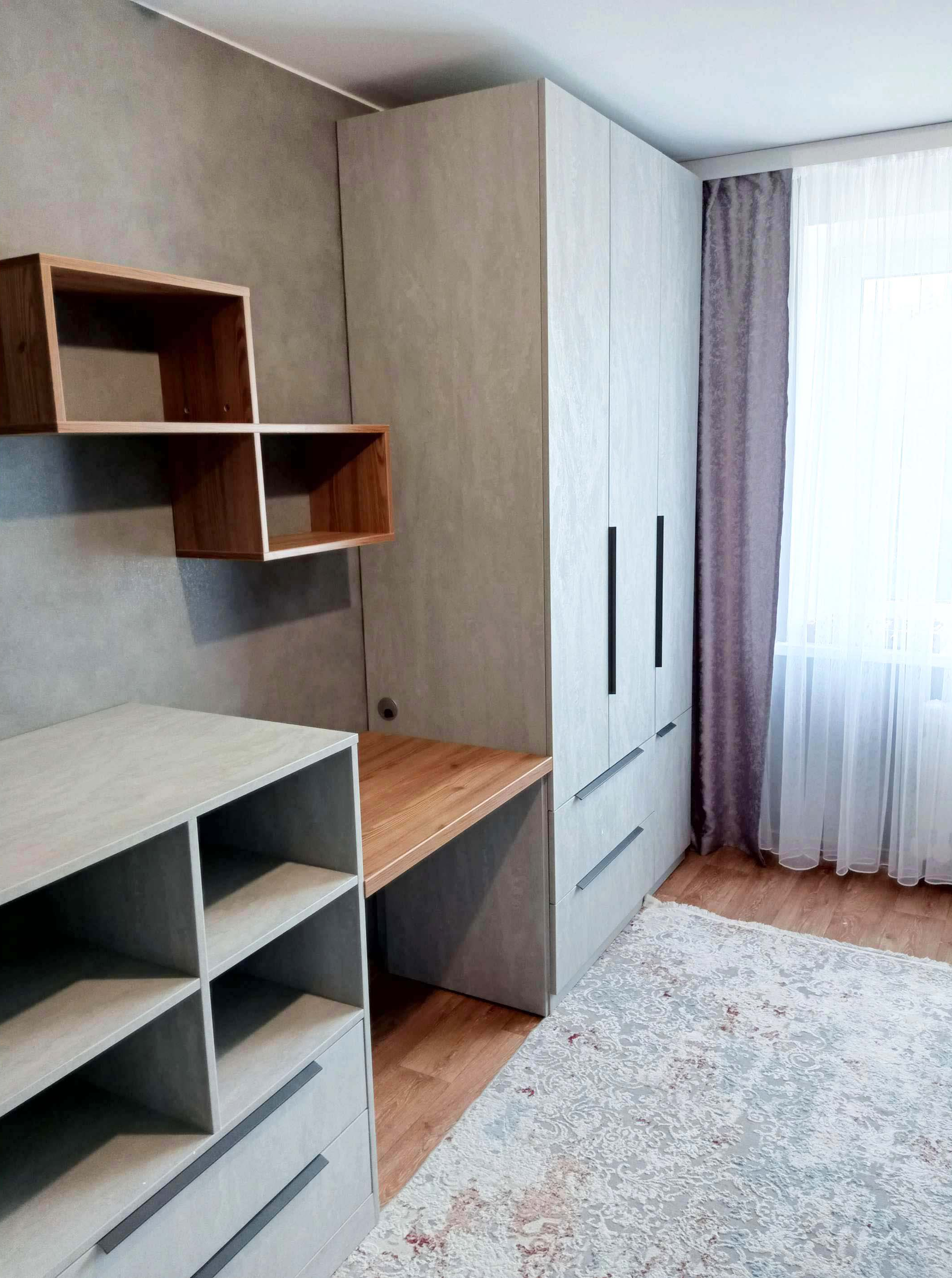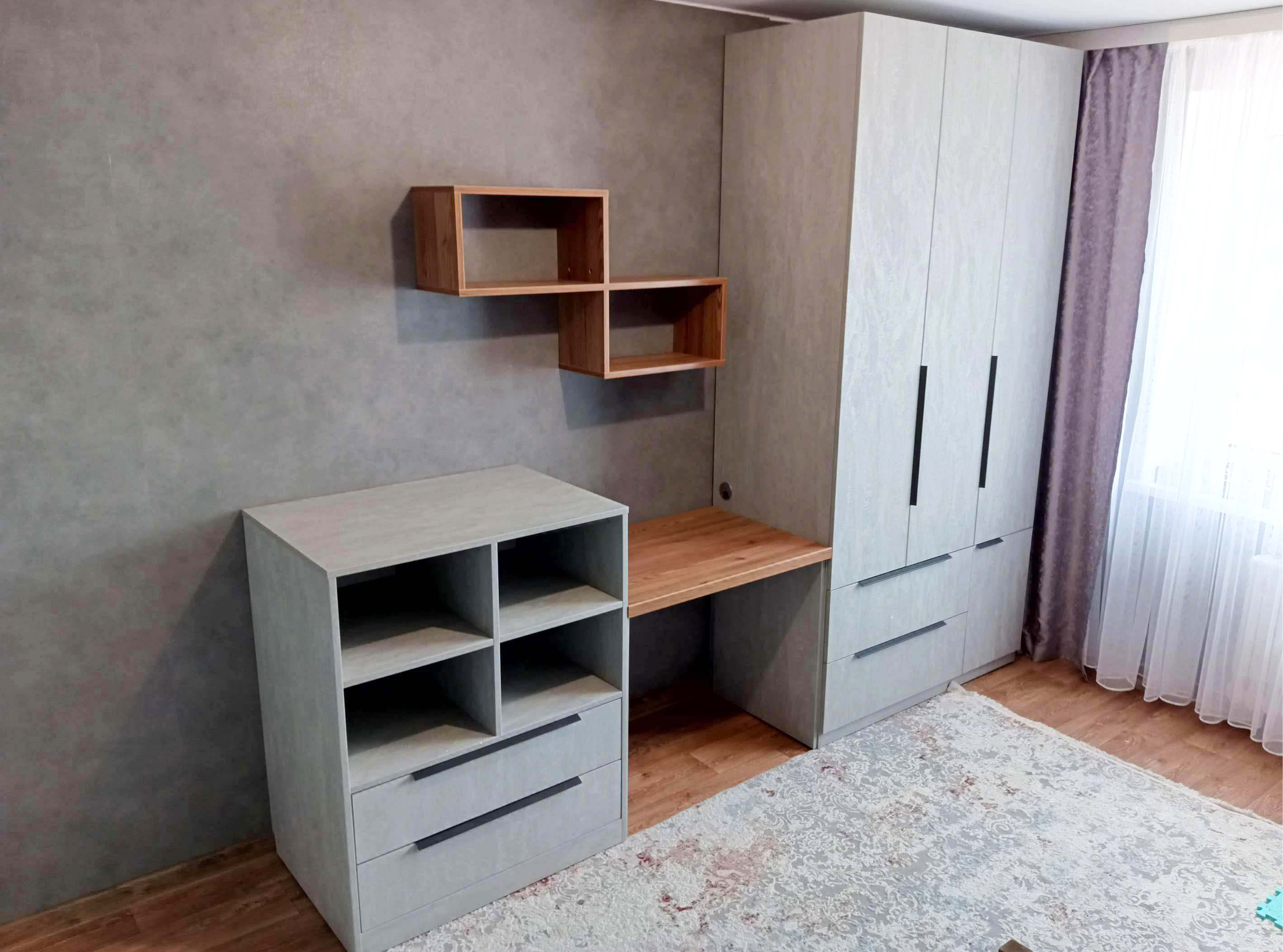Серая детская комната с кроваткой