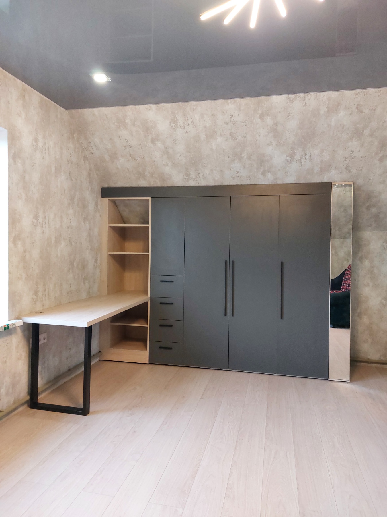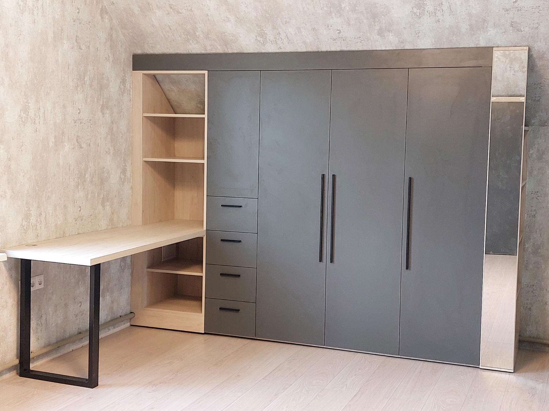 Темный шкаф для детской с интегрированным столом