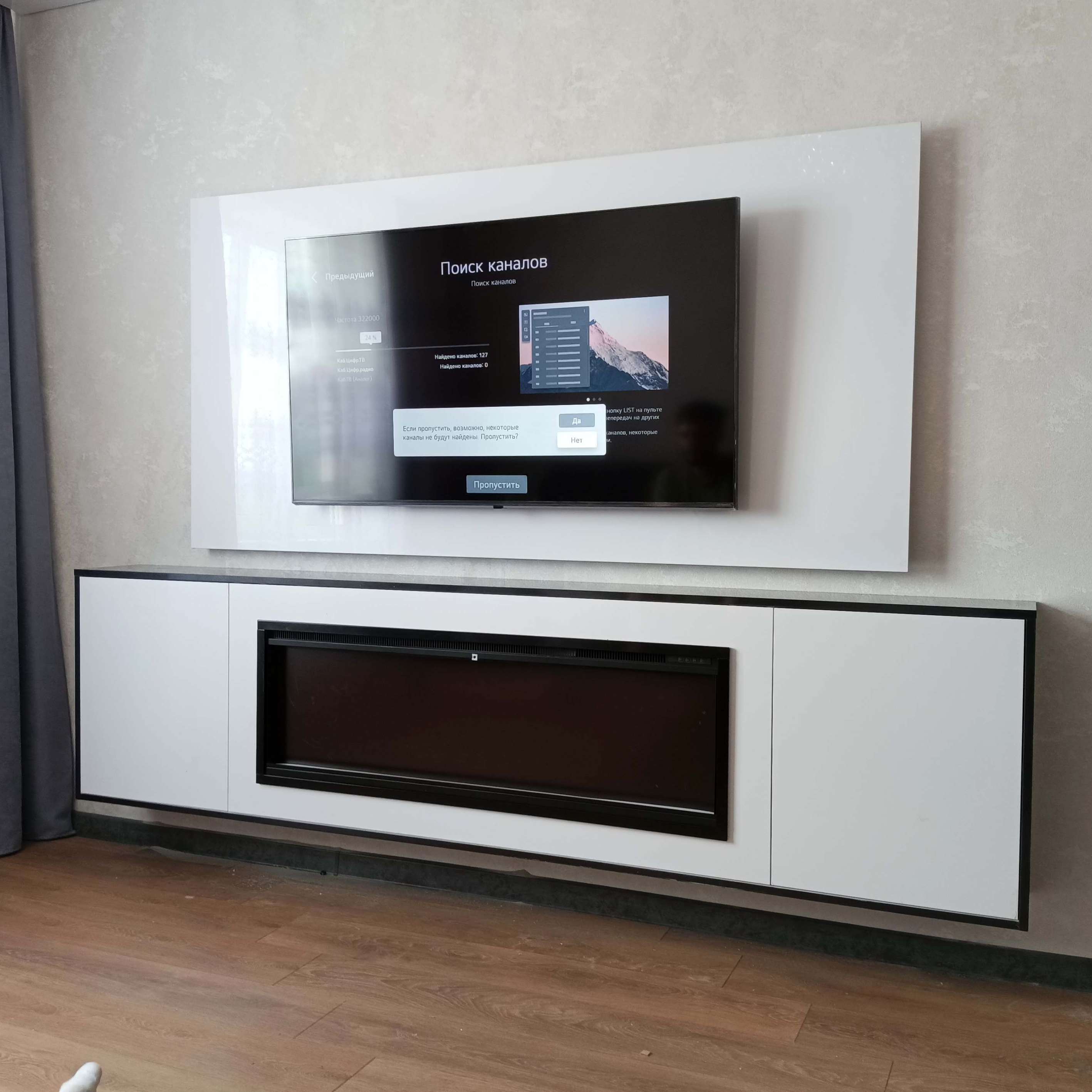 Белая современна горка для теливизора