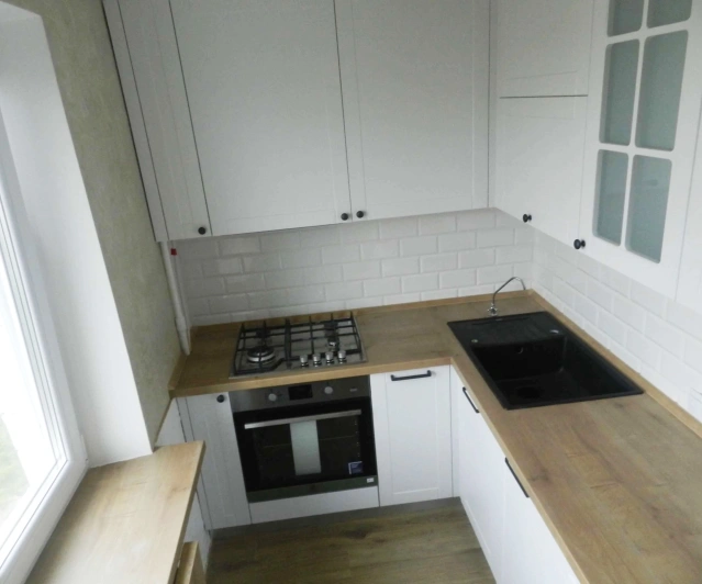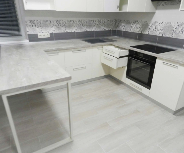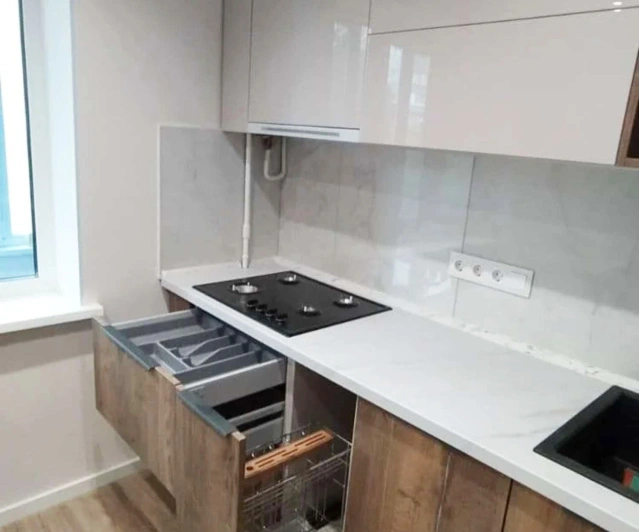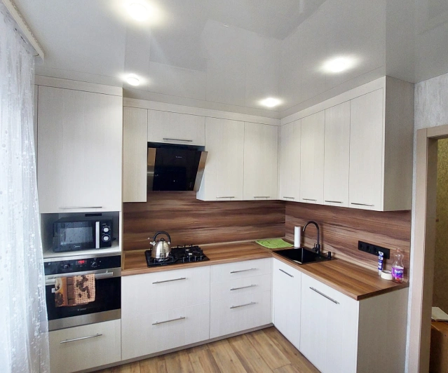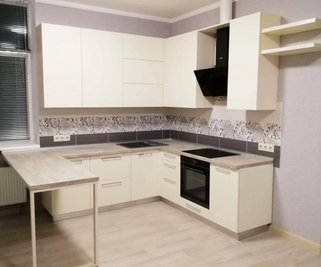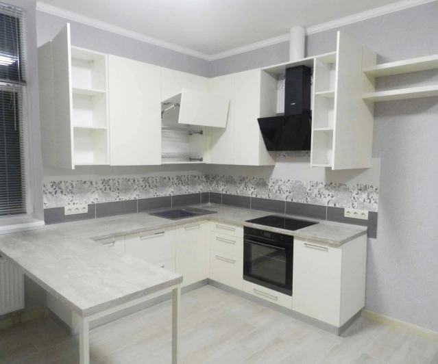 Просторная, светлая кухна с П - образной рабочей зоной