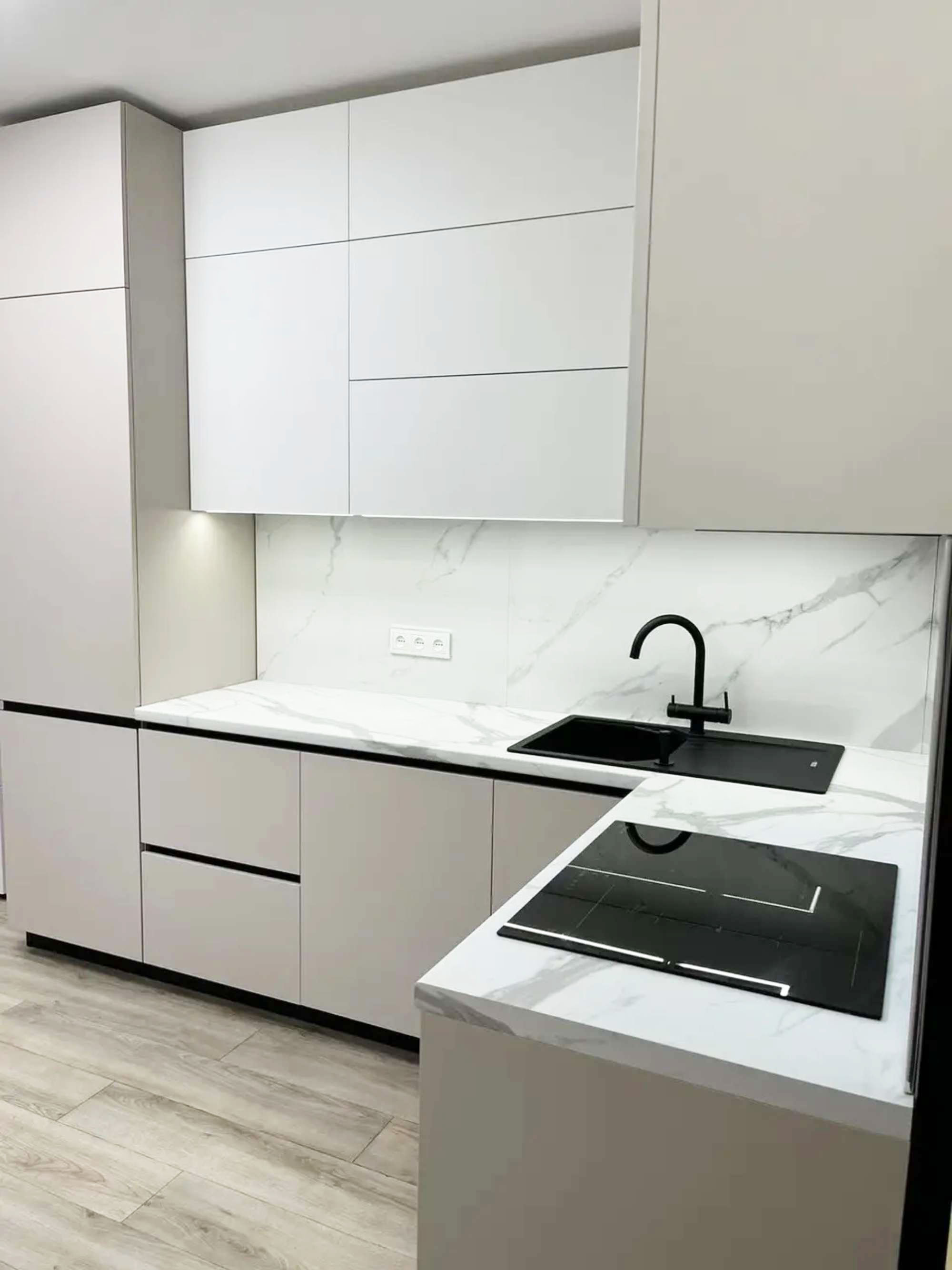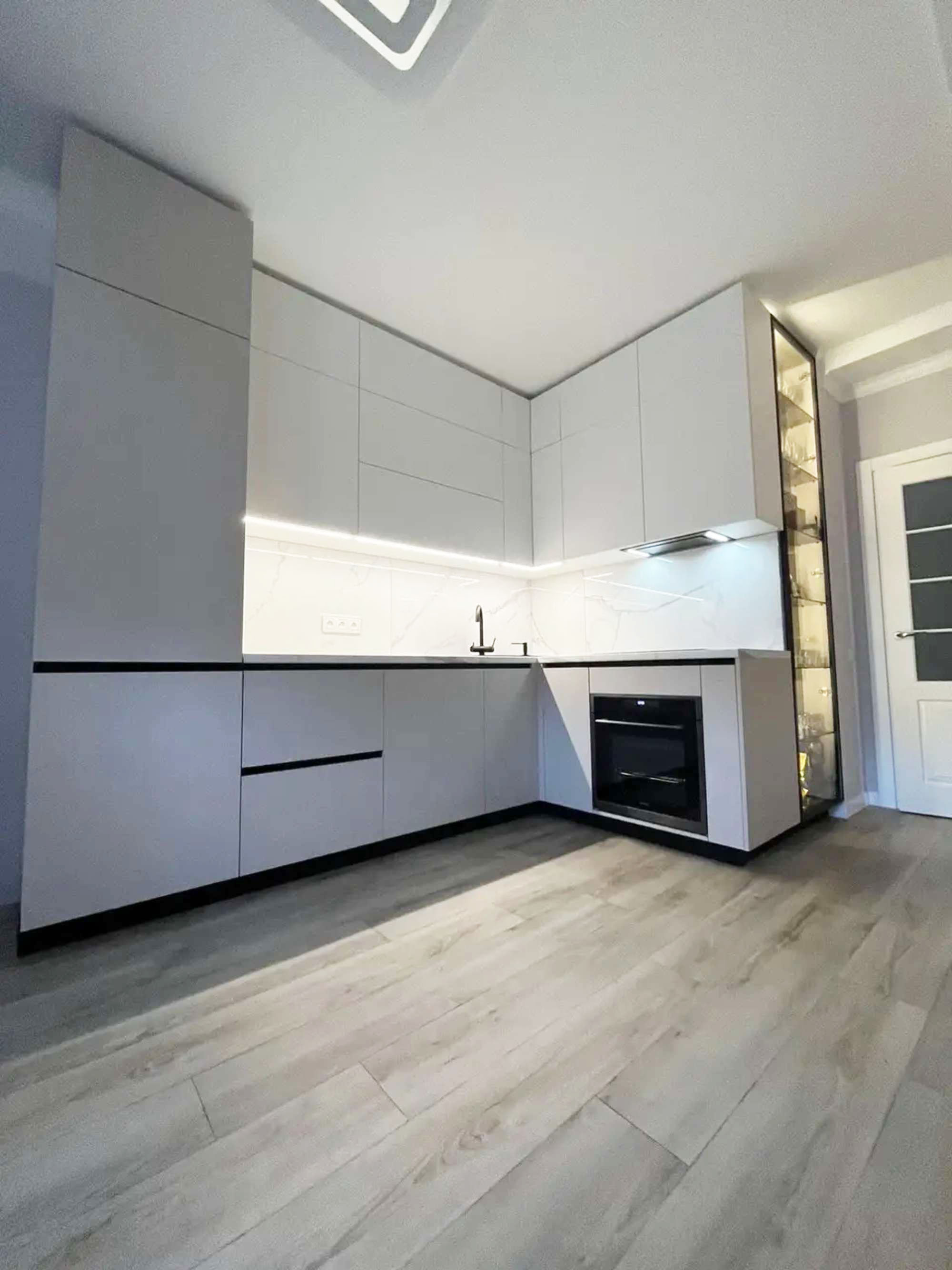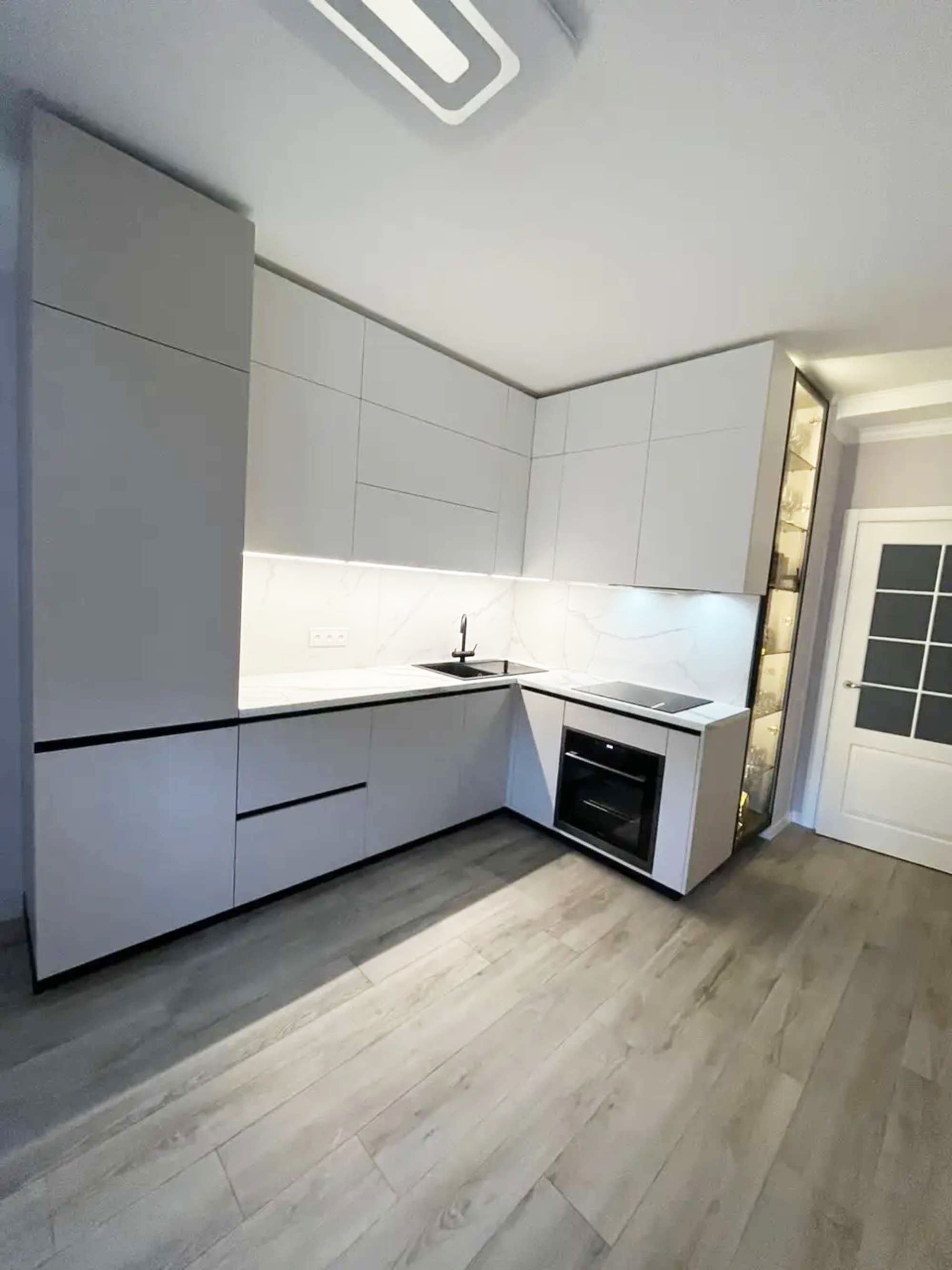 Современная белая угловая кухня