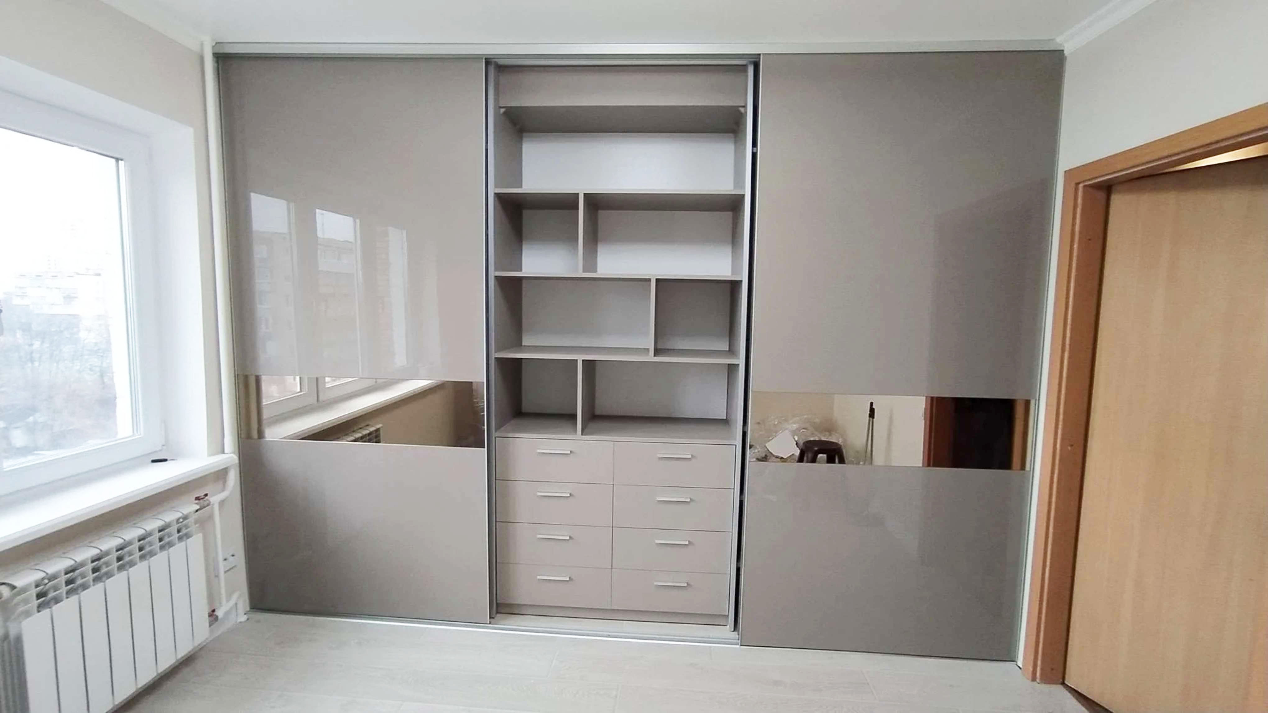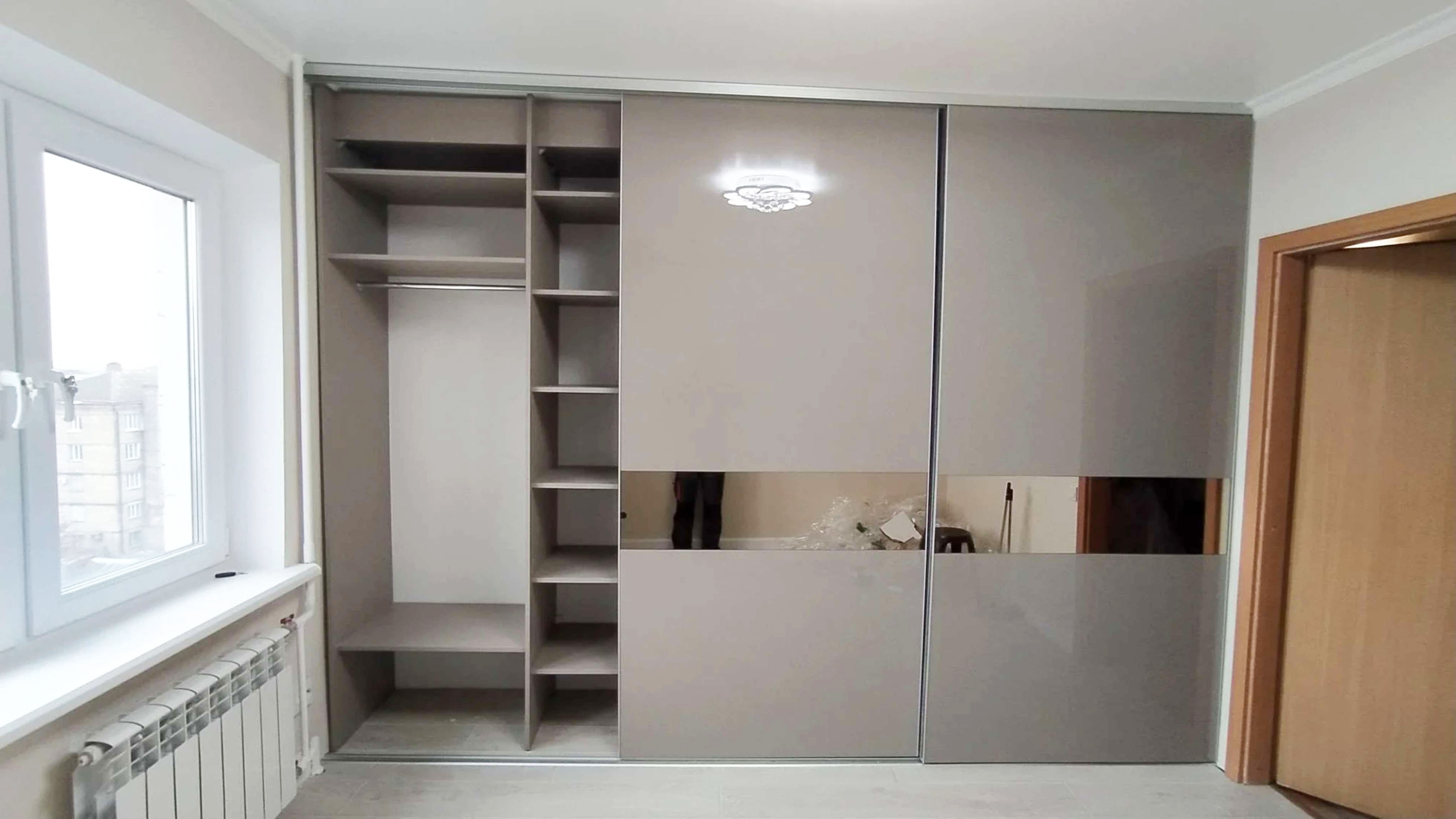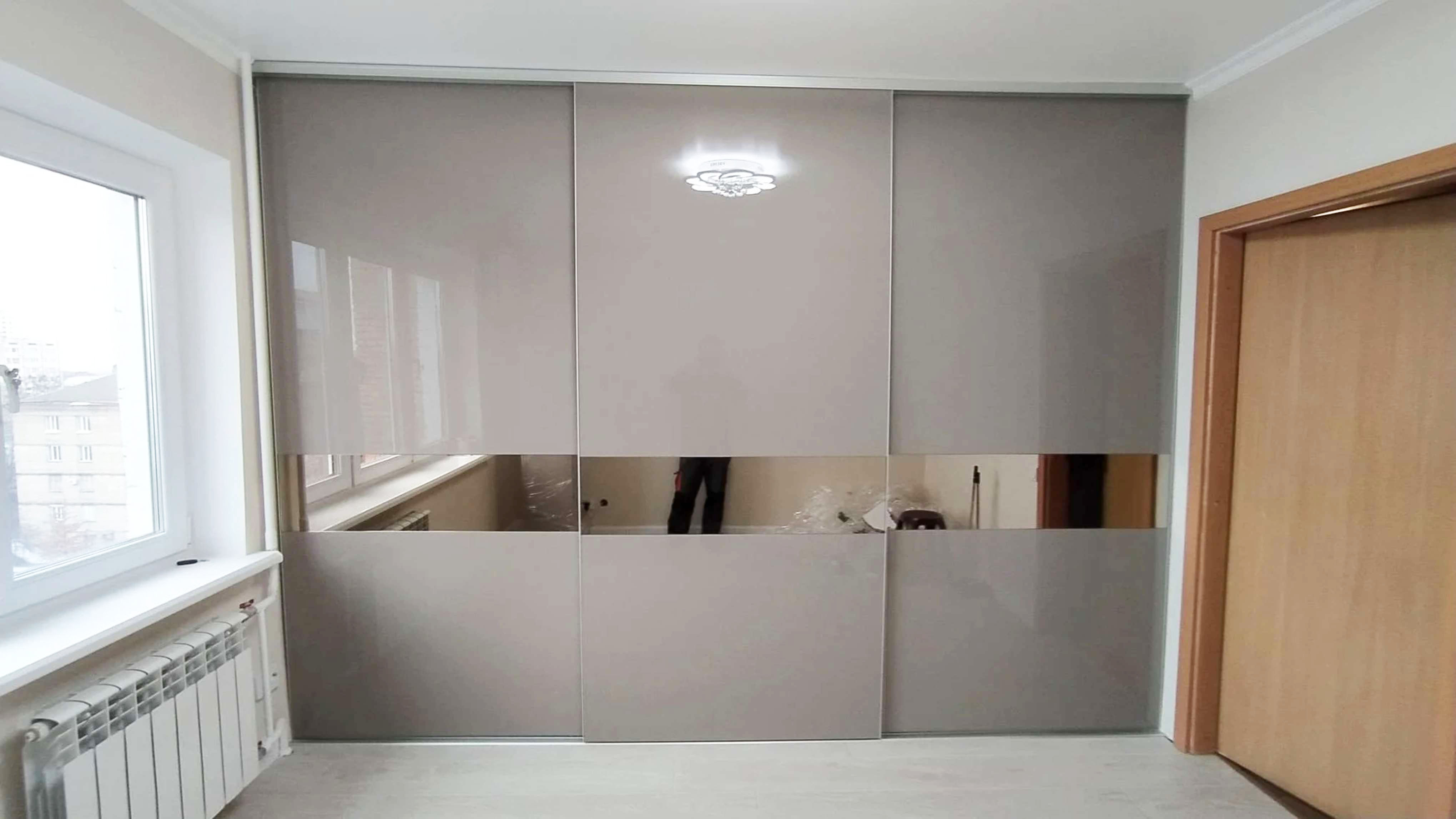 Серый шкаф купе во всю стену
