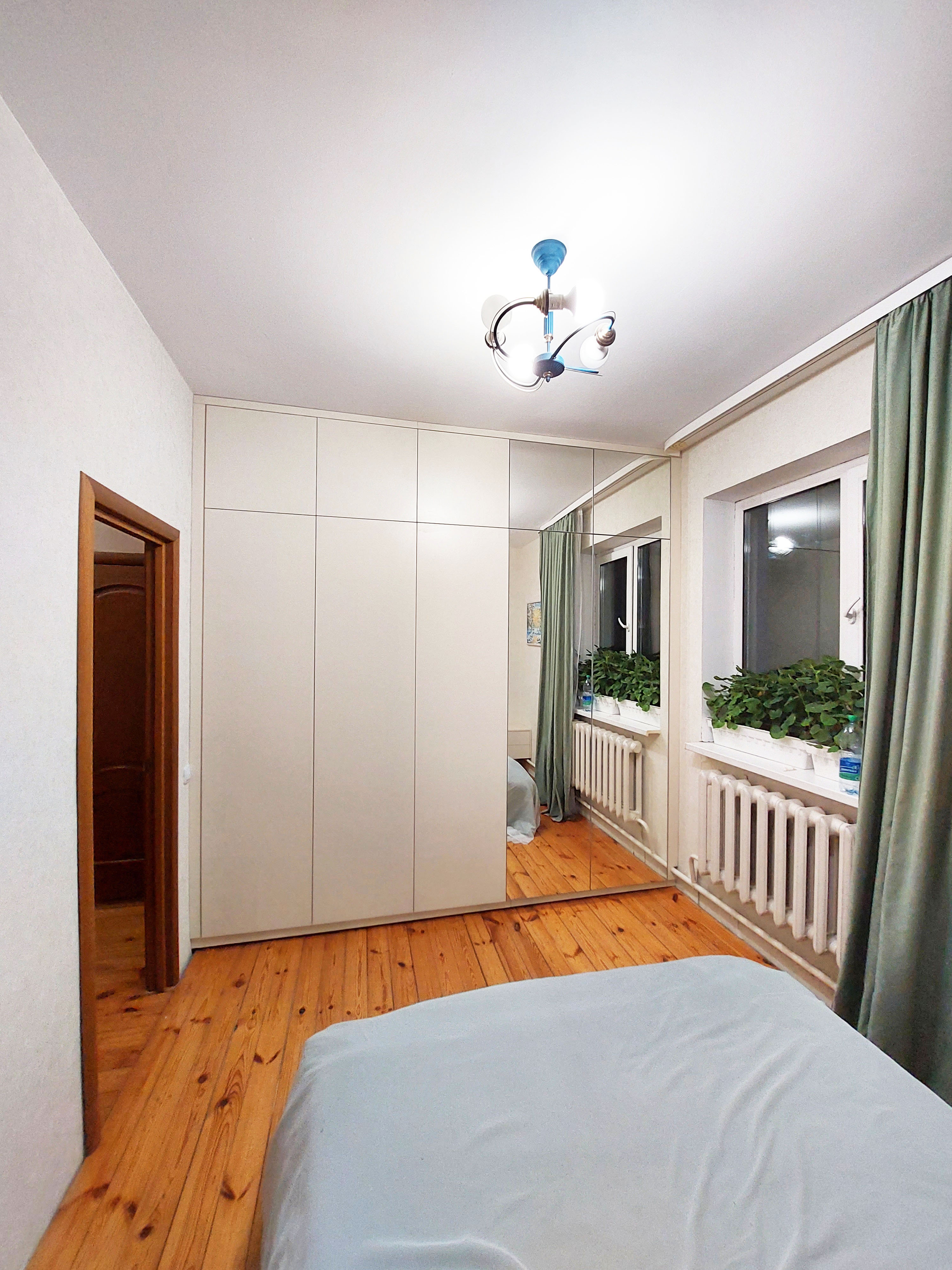 Белый распашной шкаф без ручек с зеркалом
