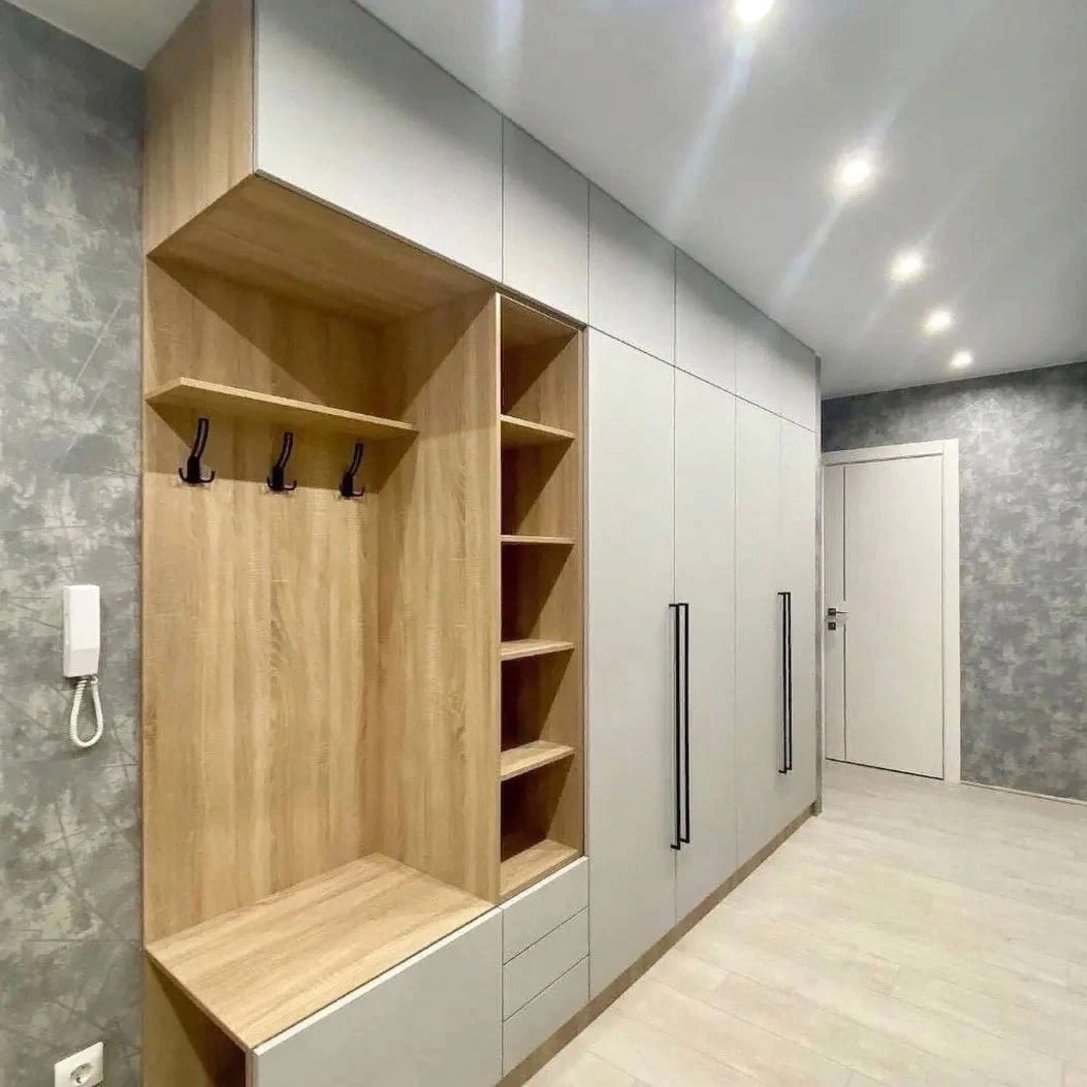 Большой белый шкаф с крючками под одежду