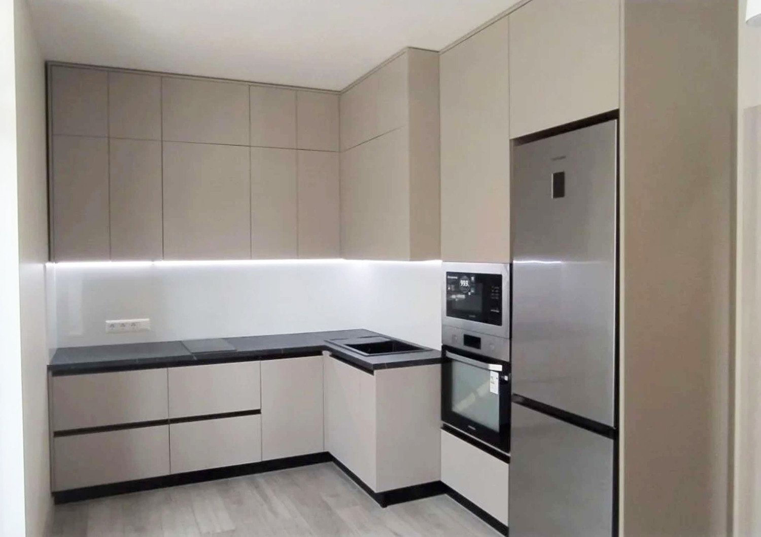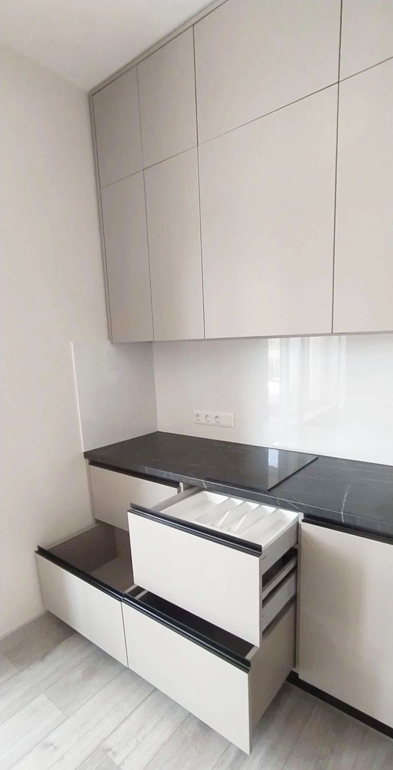| Фурнитура | Фурнитура Blum. Черные врезные ручки, петли с доводчиками, ящики Tandembox, подсветка рабочей зоны |