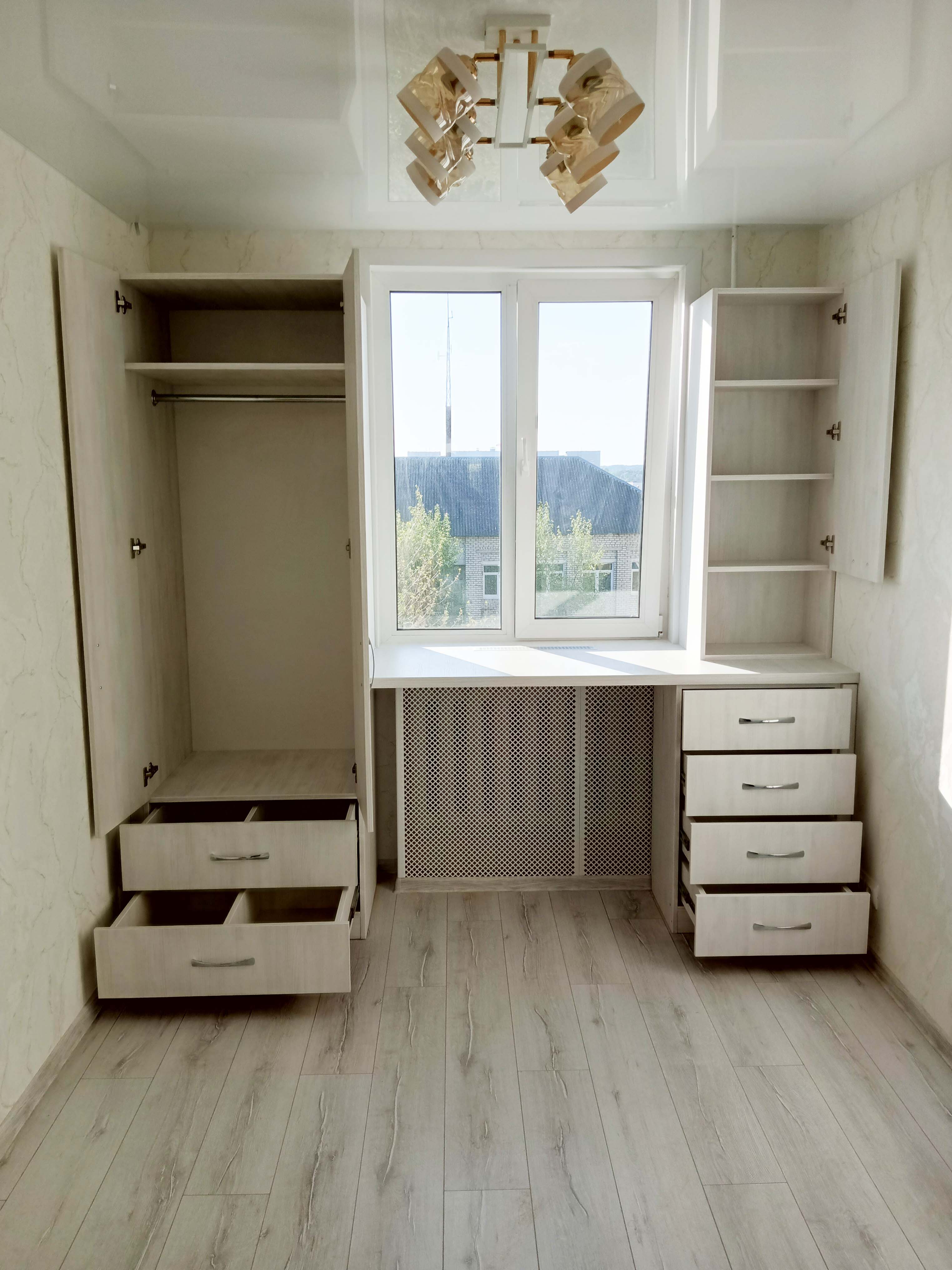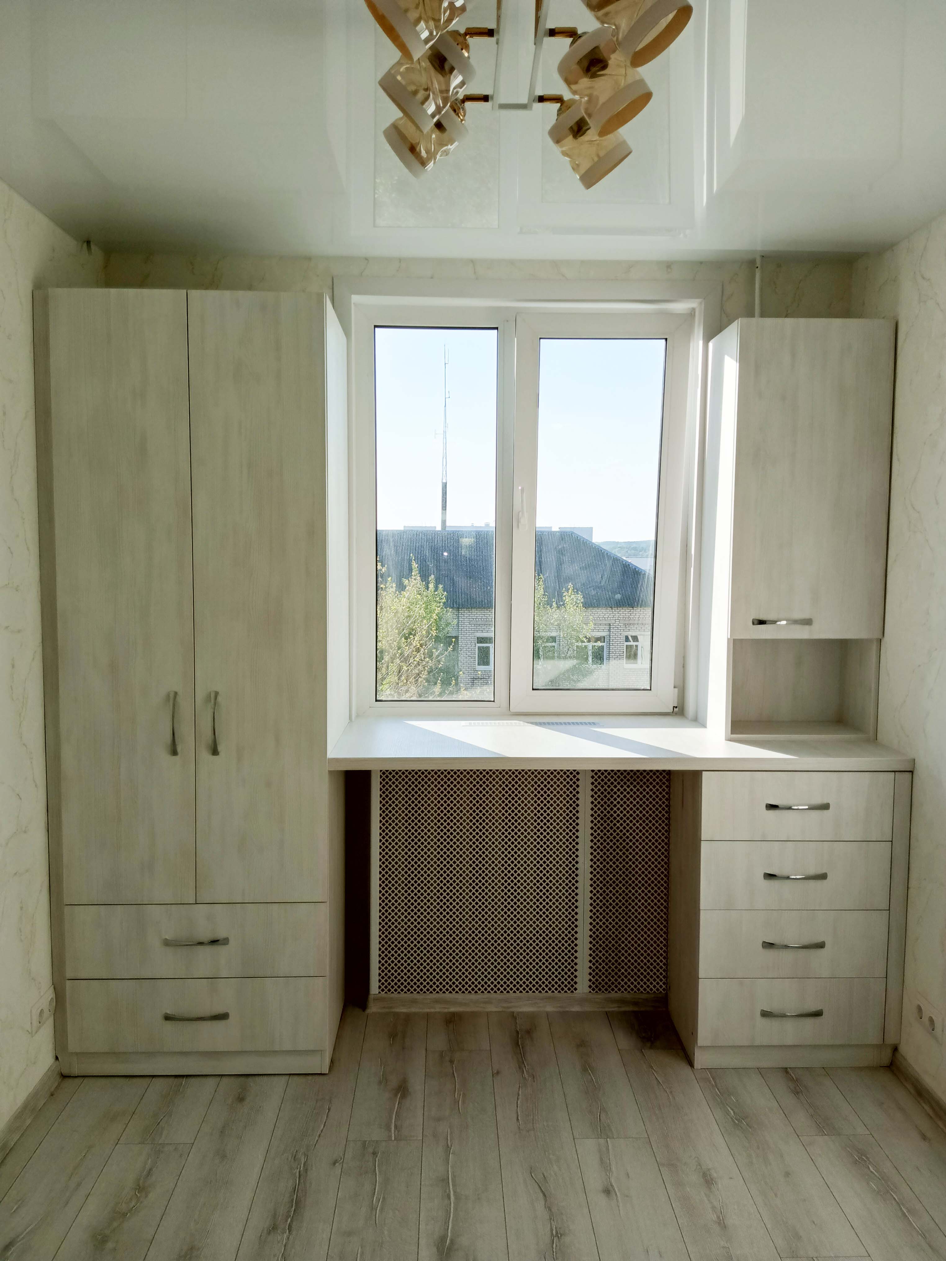 Небольшая серая детская с окном в центре