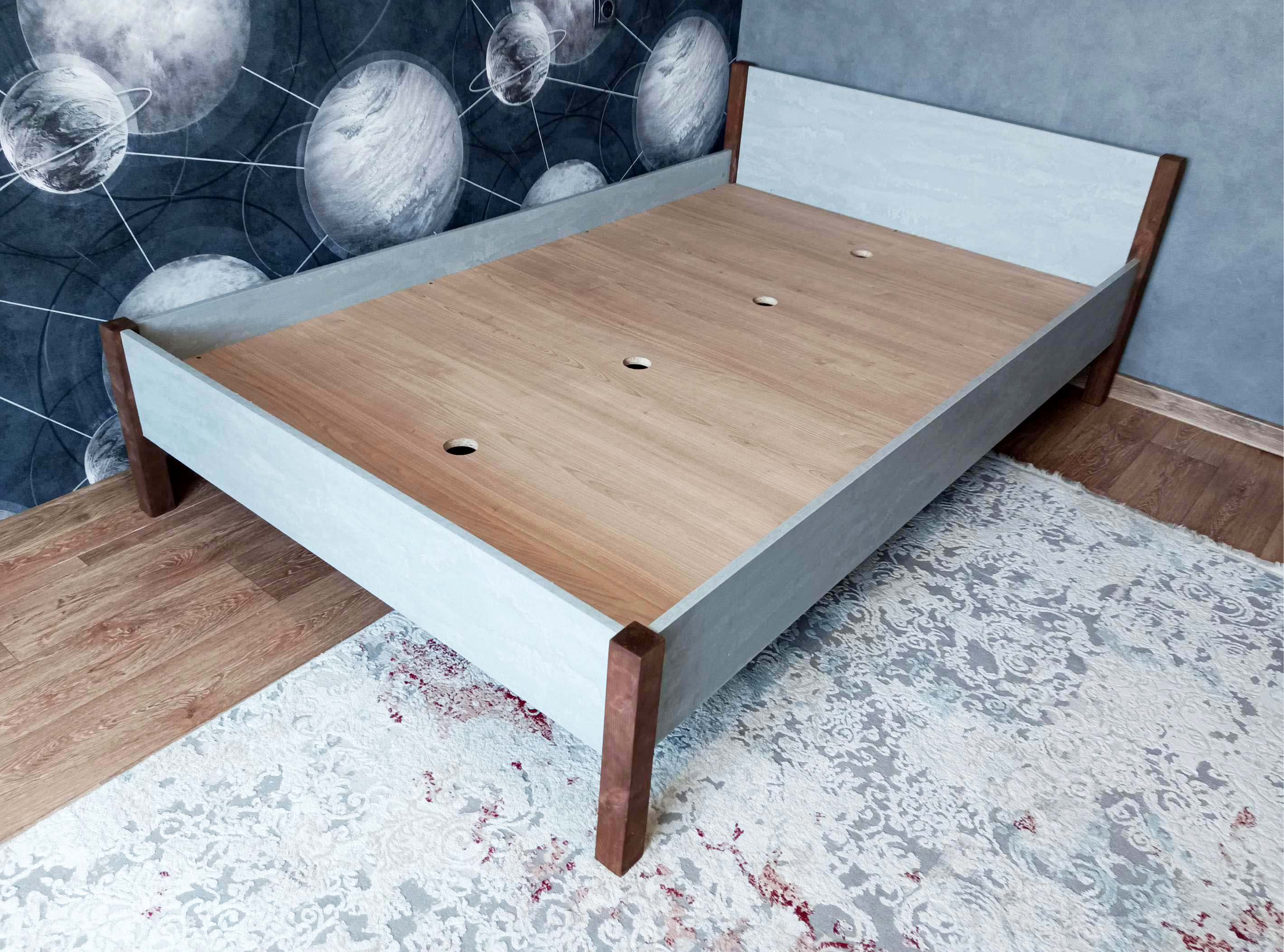 Серая детская комната с кроваткой