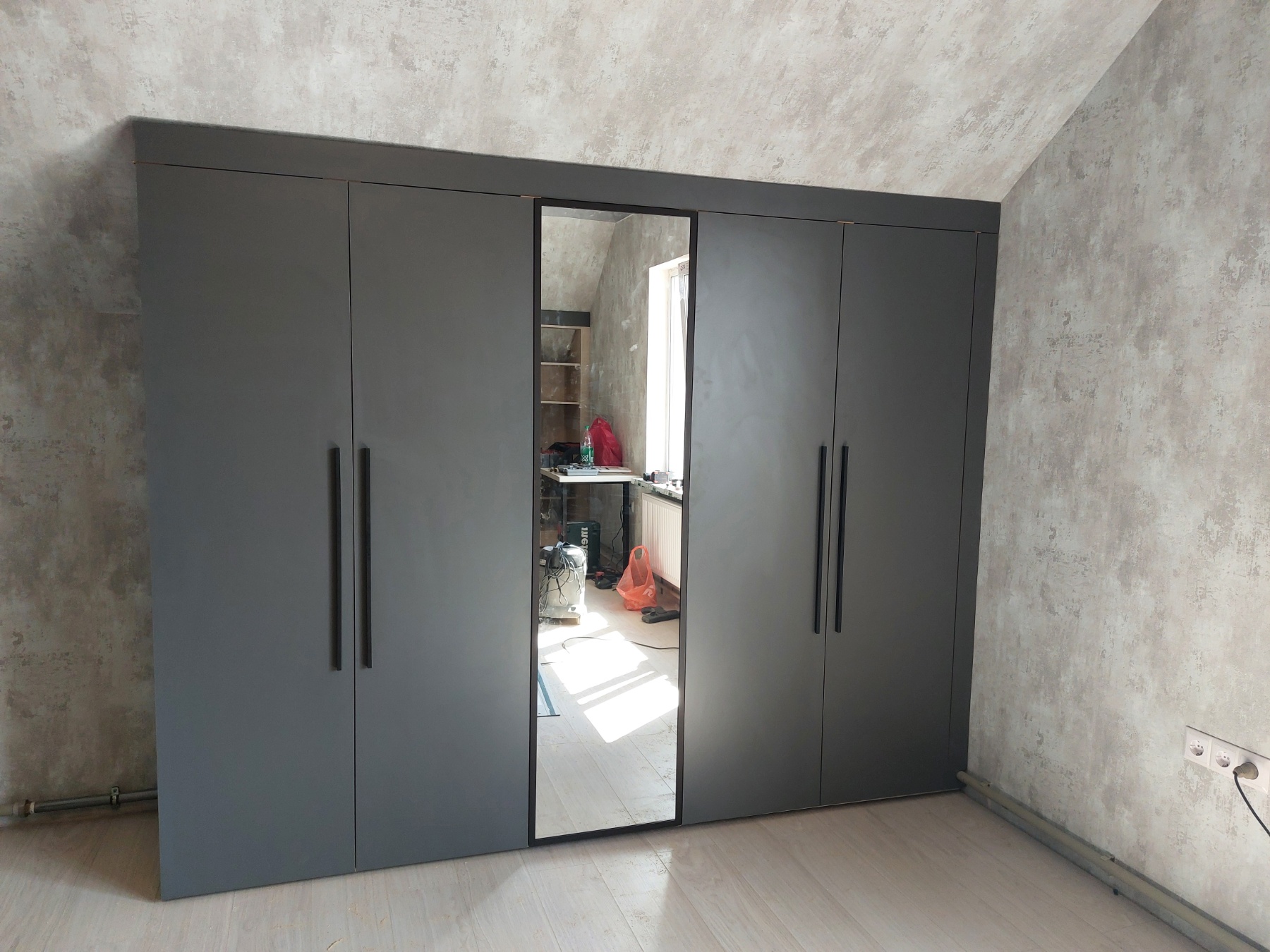 Темный шкаф для детской с интегрированным столом