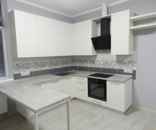 Просторная, светлая кухна с П - образной рабочей зоной