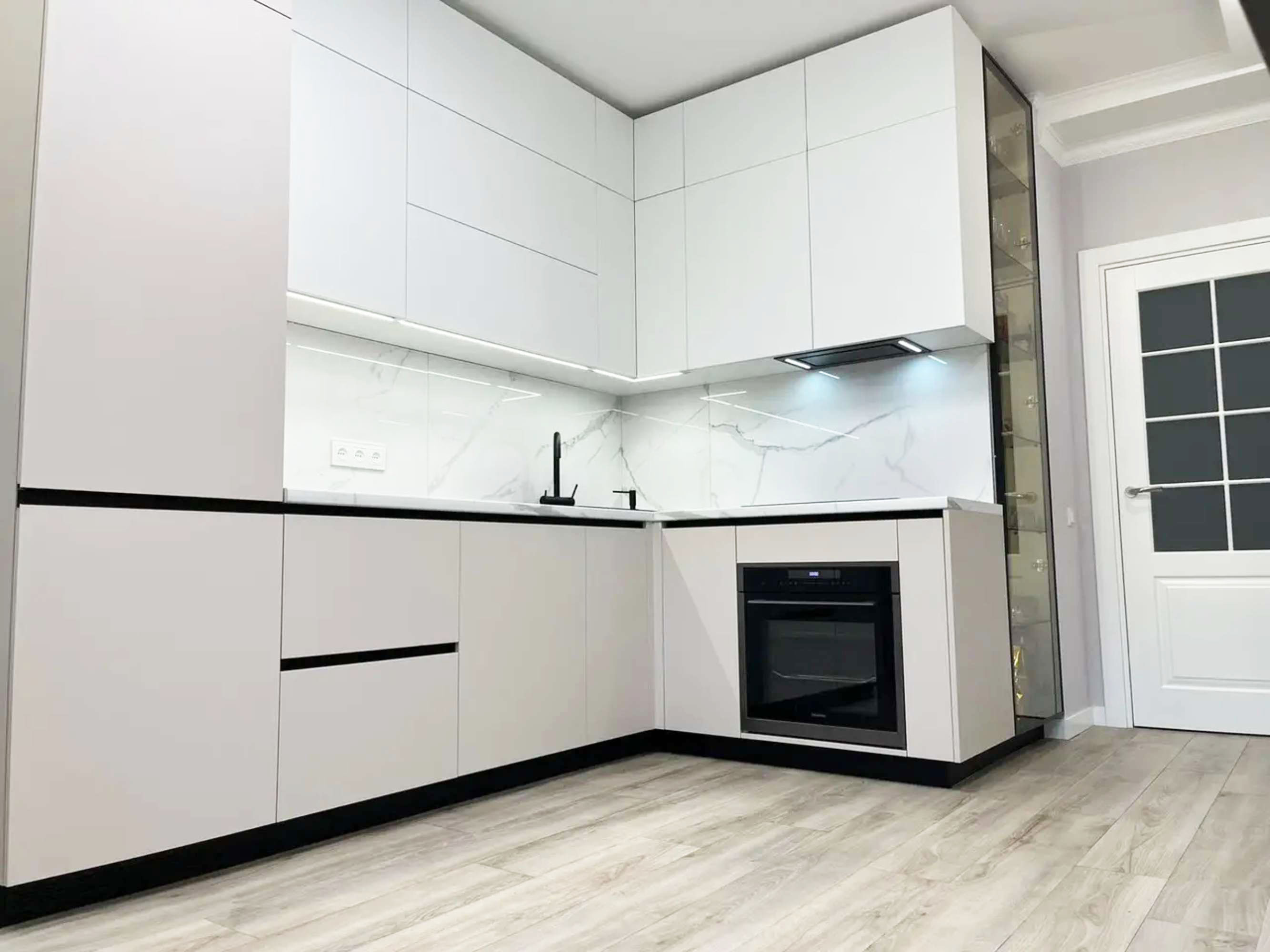 Современная белая угловая кухня