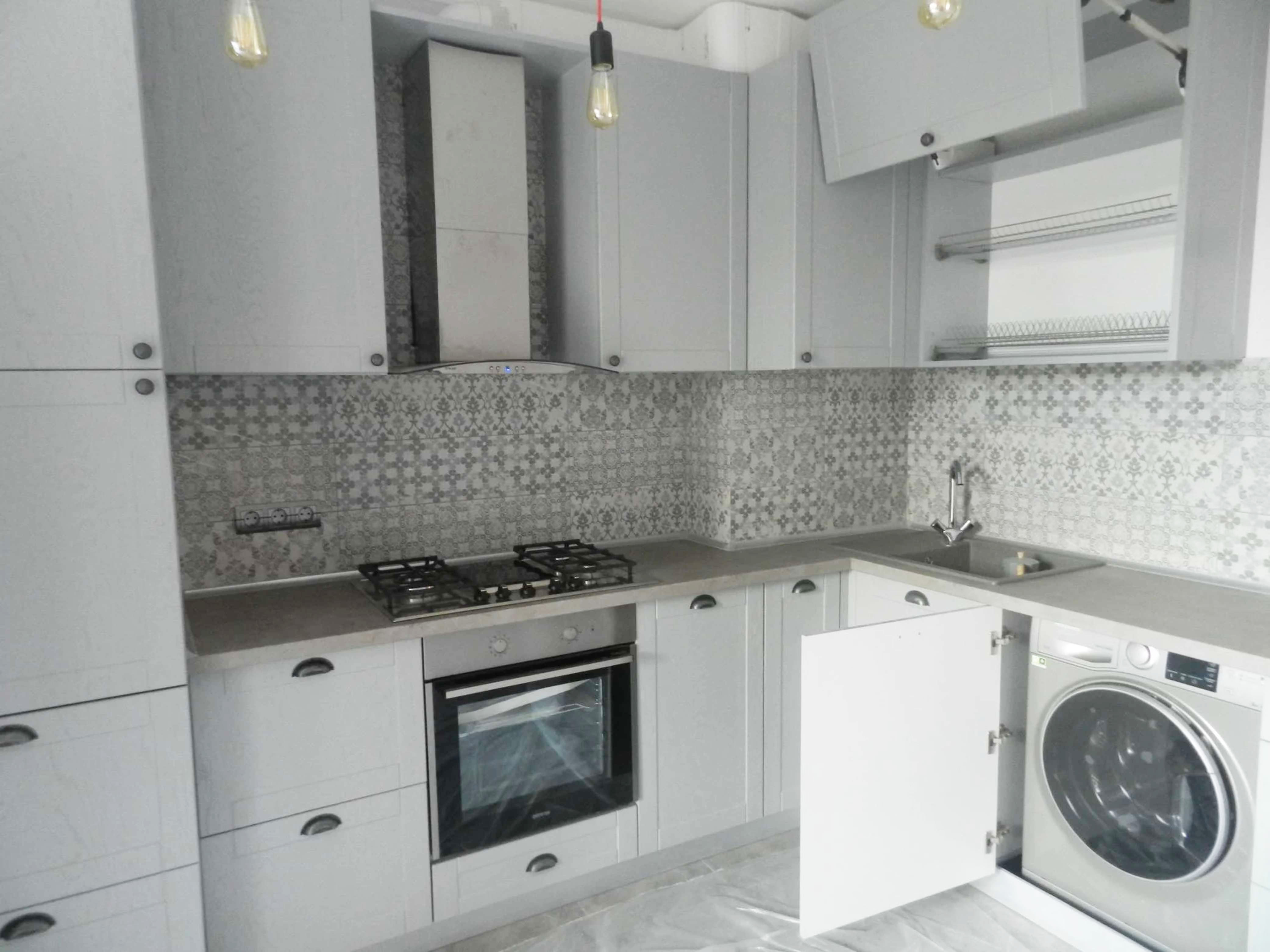 Светлая угловая кухня в кремовых цветах