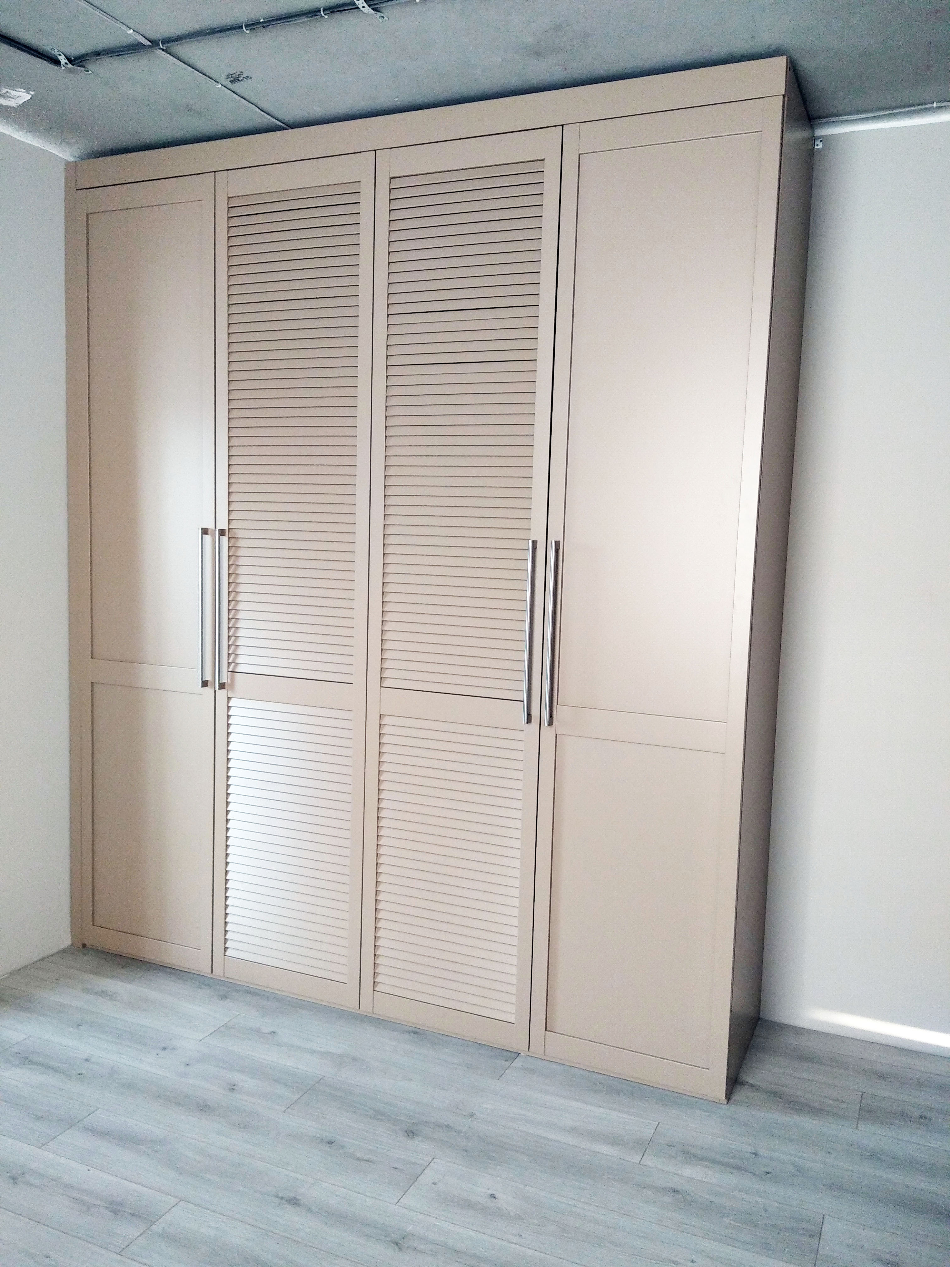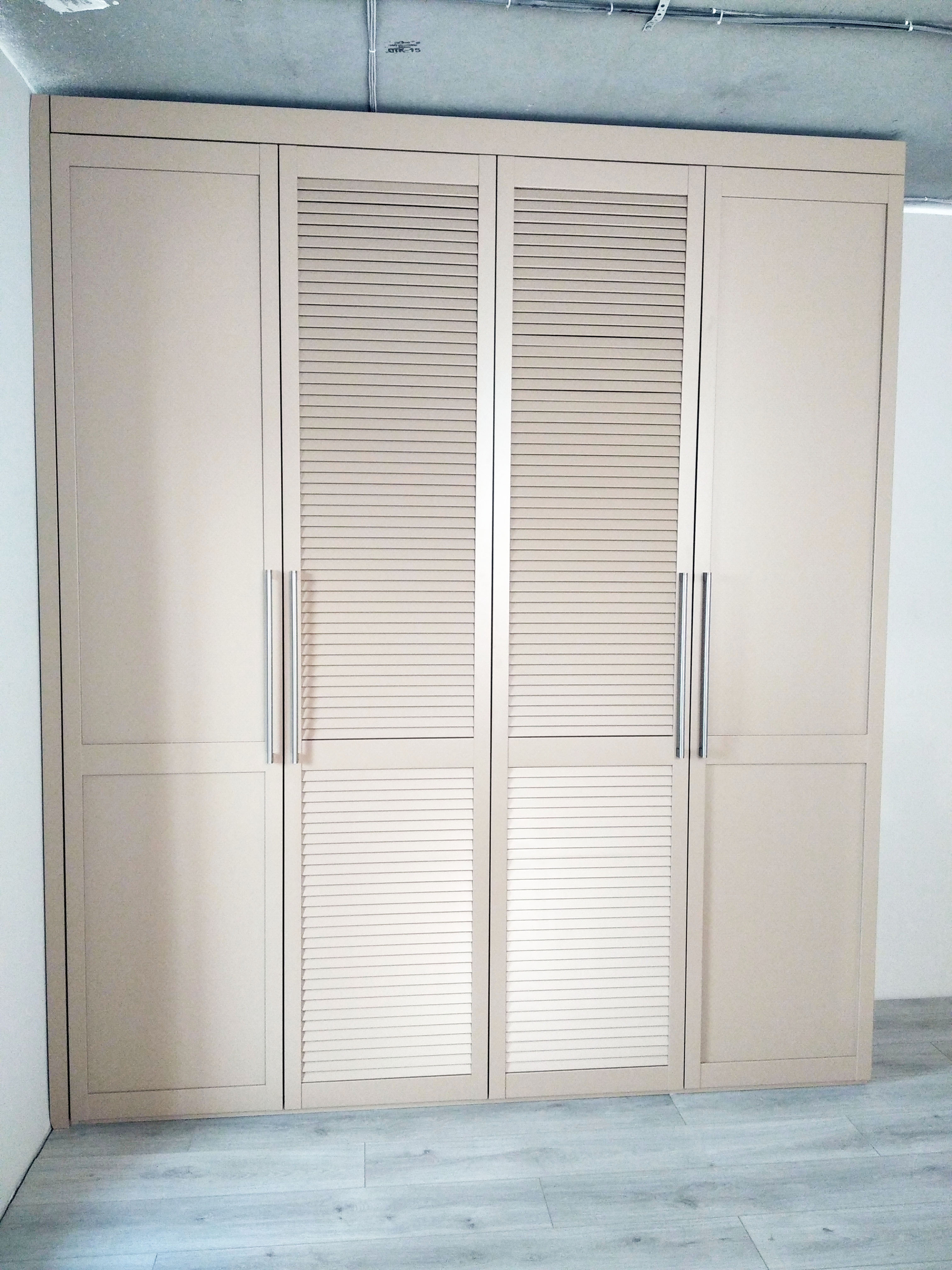 Бежевый шкаф с решетчатыми дверьми в центре